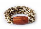 Krásný ručně vyráběný pásek v "boho stylu" s hnědými korálky z kokosu se stane nádherným doplňkem. Kokosové korálky jsou propleteny elastickým pružným provázkem. Pásku dominuje...