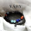 Vhodné kameny pro Váhy jsou mimo jiné sluneční kámen, lapis lazuli a akvamarín. Náramek je upleten z těchto osmi milimetrových kamenů, lávy a křišťálu. Kameny jsou navlečeny na černé voskované šňůře. Posuvné zapínání je vyrobeno z malých uzlíků.