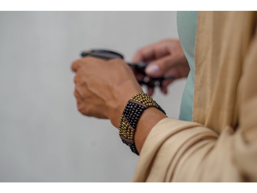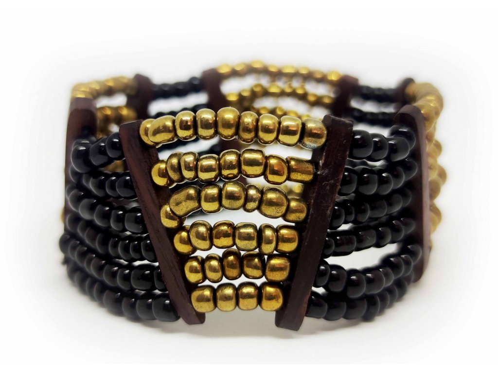 Korálkový náramek černo zlatý